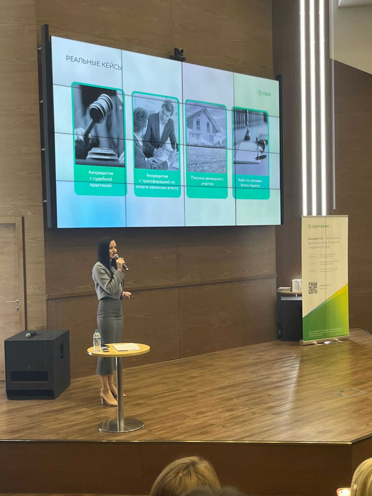 Эксперт от Сбербанка Дина Негруца рассказала коллегам о возможностях и преимуществах использования аккредитивов в сделках с недвижимостью и не только. Лучший вопрос от аудитории по этой теме был отмечен специальным призом.