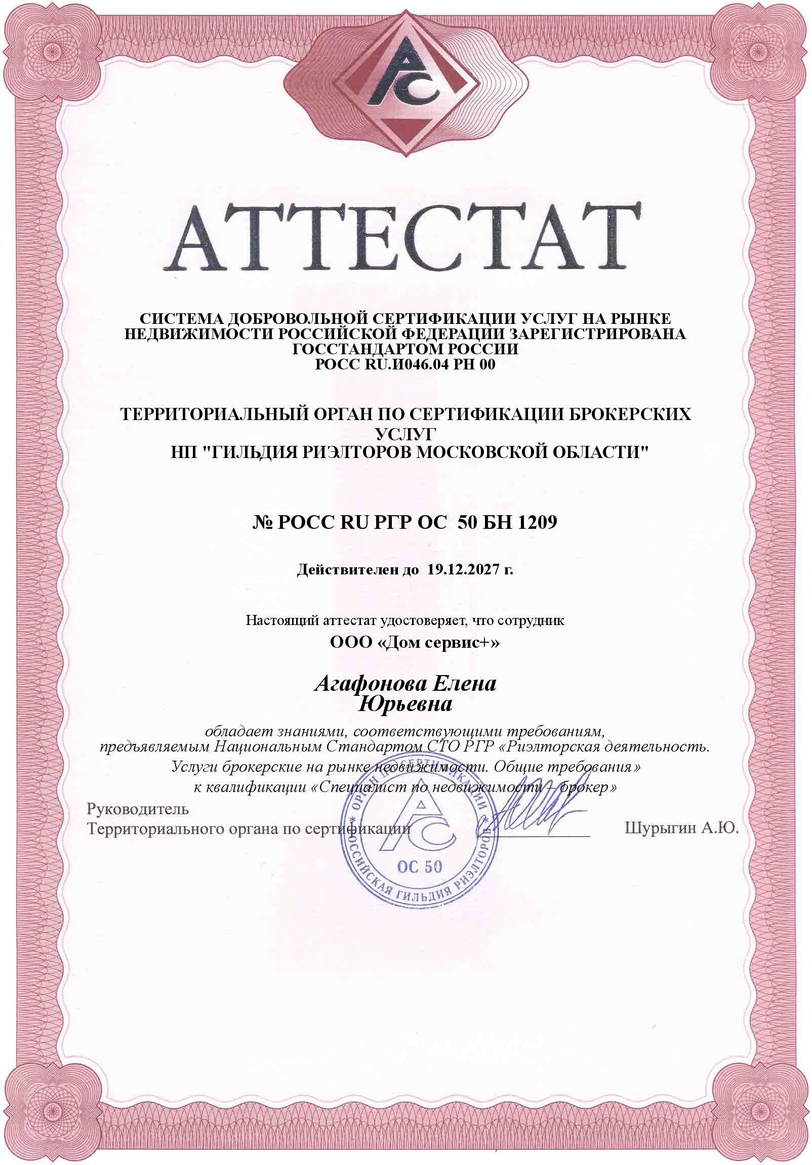 Список аттестованных специалистов компаний - членов Гильдии риэлторов Московской области
