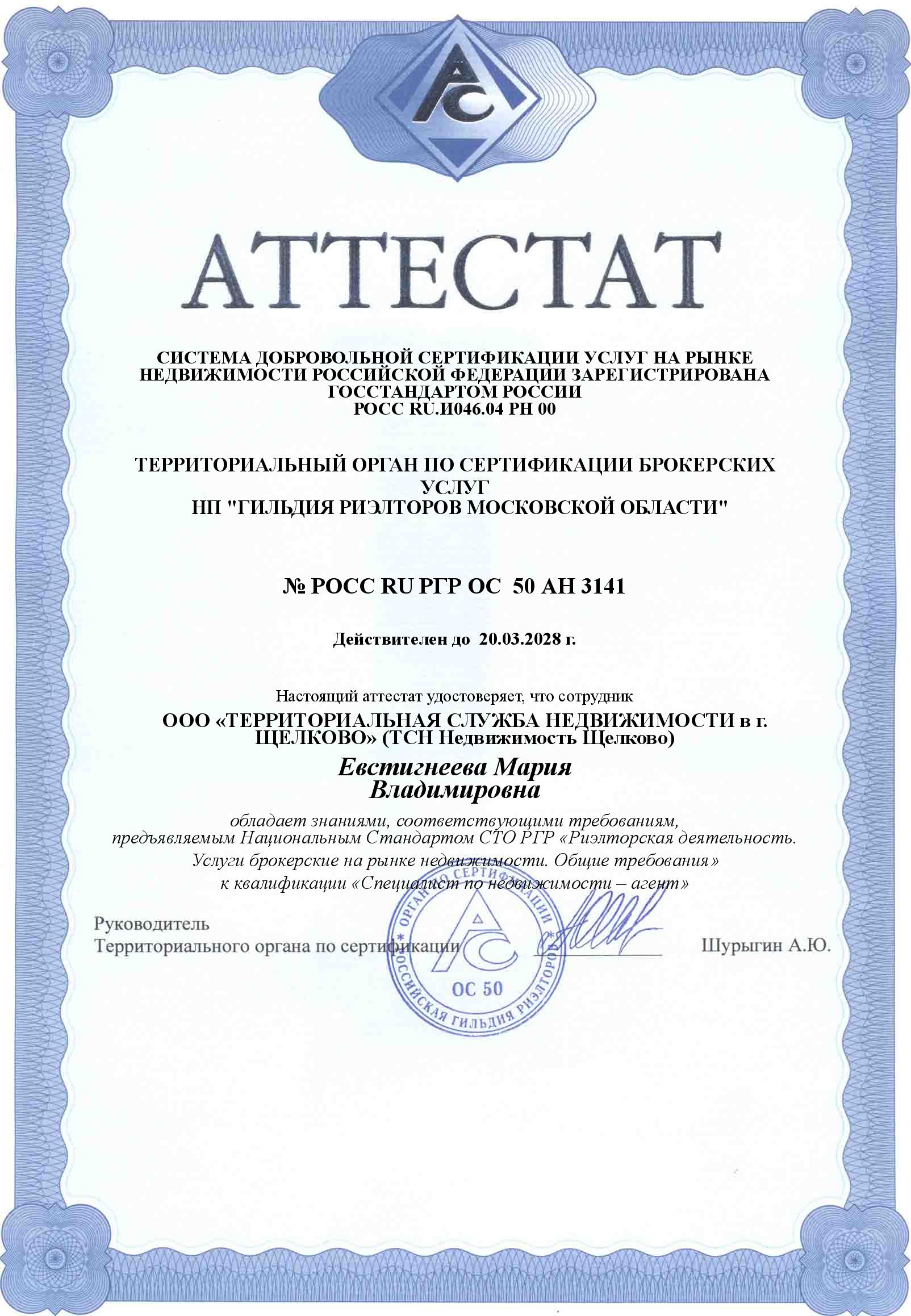 Список аттестованных специалистов компаний - членов Гильдии риэлторов Московской области