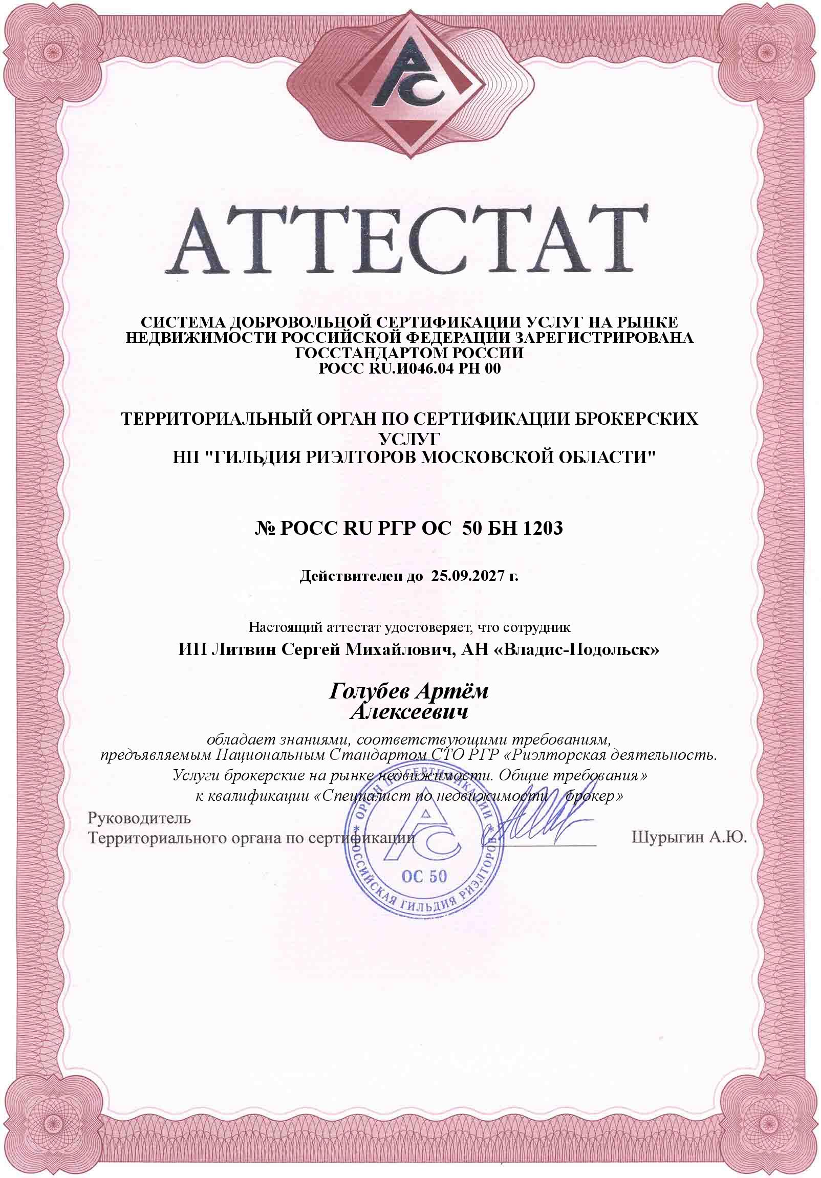 РОСС RU РГР ОС 50 БН 1203 до 25-09-2027 г.