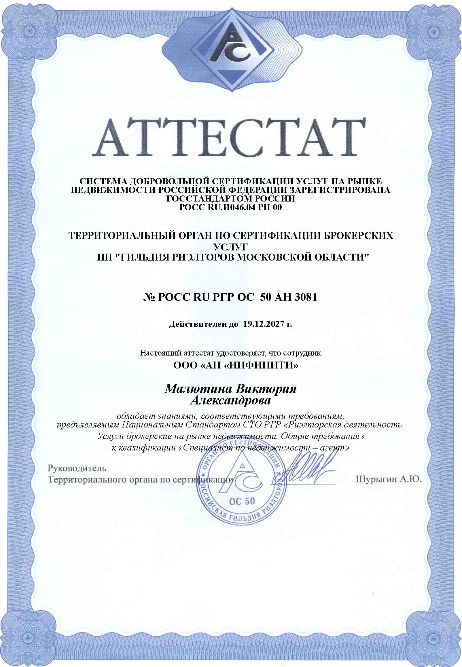 № аттестата, срок действия аттестата