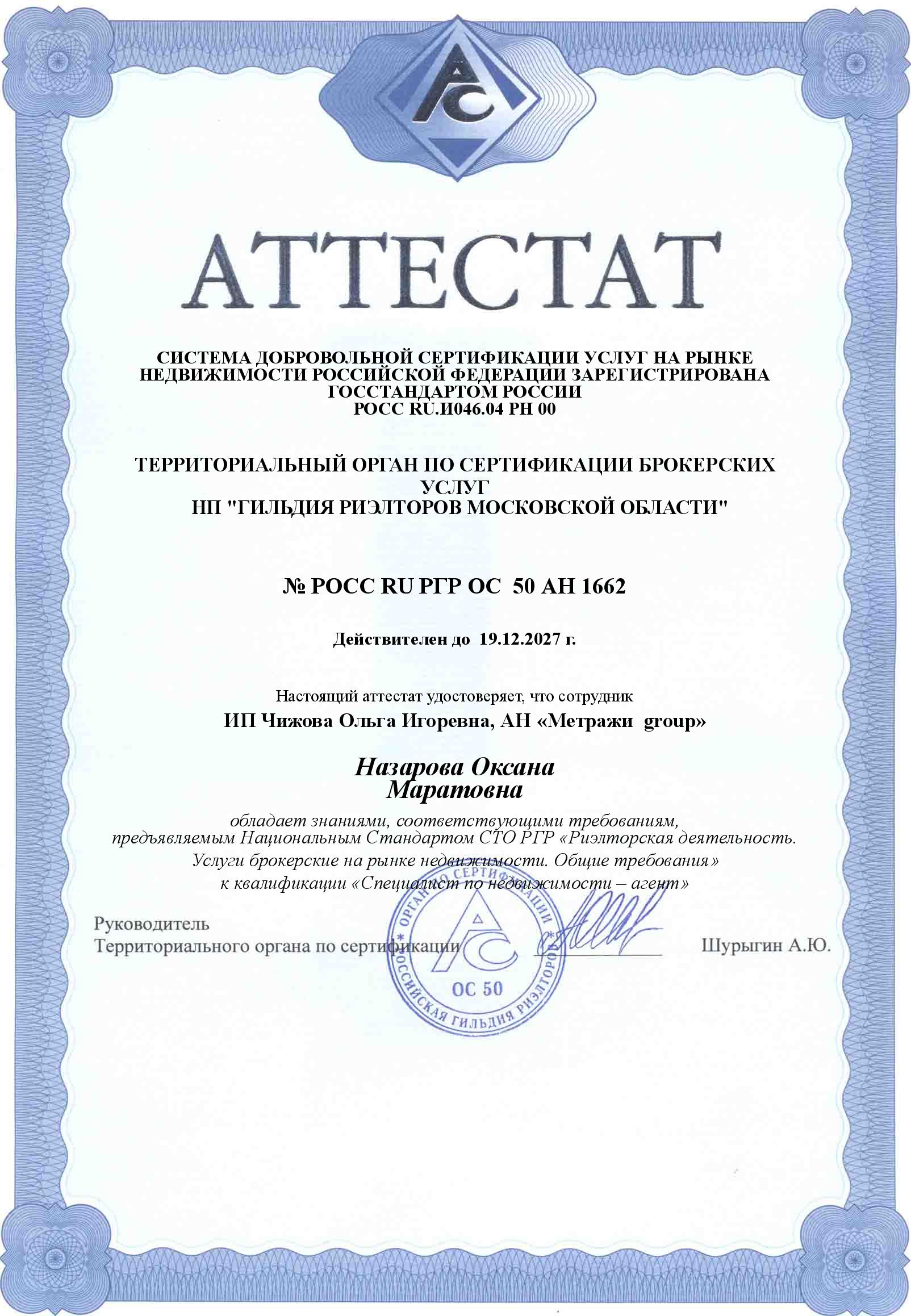 Достижения и награды: Аттестация Гильдии Риэлторов Московской области.